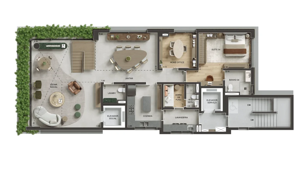 • Perspectiva ilustrativa da planta da unidade Maison de 337,71 m².