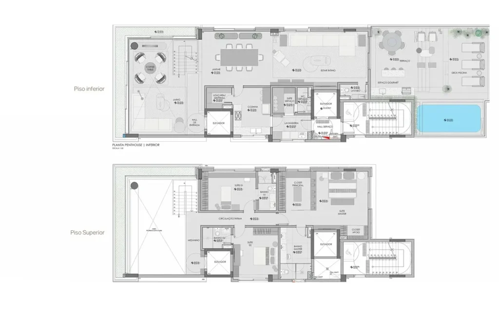 • Perspectiva ilustrativa das plantas da unidade Penthouse de 348,7 m².