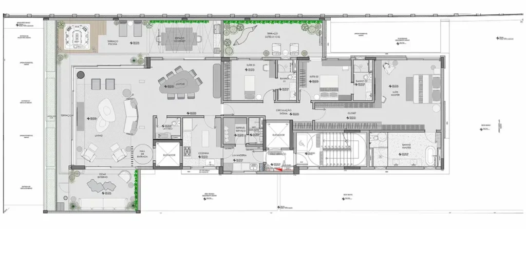 • ILUSTRAÇÃO ARTISTICA DA PLANTA INFERIOR TRIPLEX 438,3m²